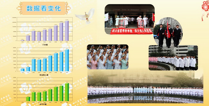 60年,沧海变桑田。四川省人民医院与祖国共奋进,谱写了无数成功的乐章:从低矮的平房到雄伟的电梯式门诊、住院群楼,从简陋的医疗器械到各种国际先进水平的高精尖的医疗设备,从每年只有几万就医患者的小医院到成为年逾数百万就医患者信赖并兼顾科技教学规模 的大型临床研究型医院集团。