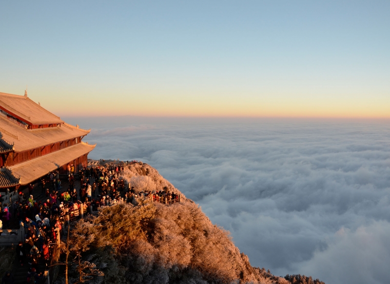 峨眉山位于中国四川省乐山市峨眉山市境内,是中国“四大佛教名山”之一,地势陡峭,风景秀丽,素有“峨眉天下秀”之称,山上的万佛顶最高,海拔3099米,高出峨眉平原2700多米。《峨眉郡志》云:“云鬘凝翠,鬒黛遥妆,真如螓首蛾眉,细而长,美而艳也,故名峨眉山。”
