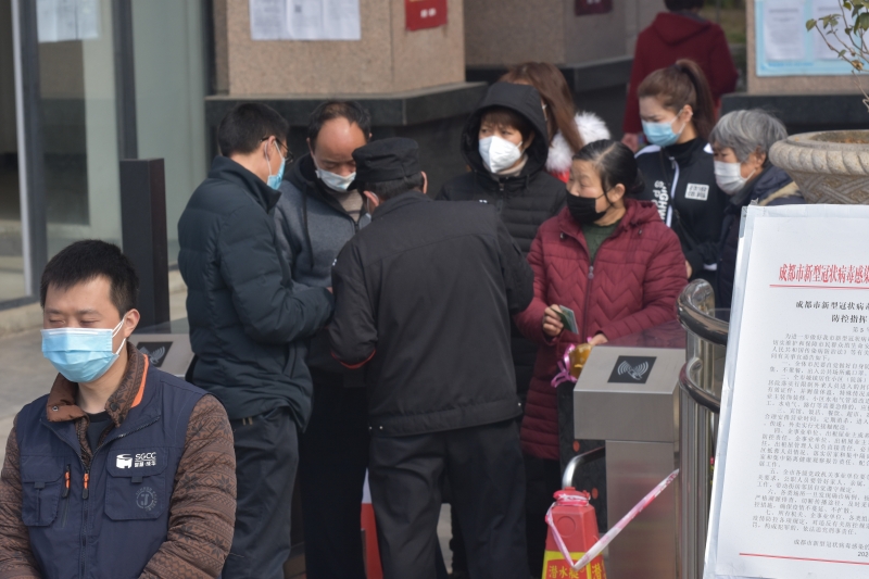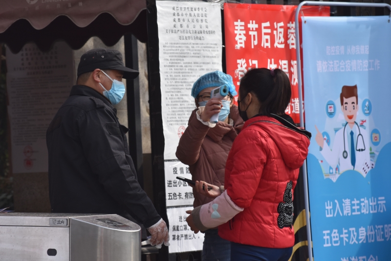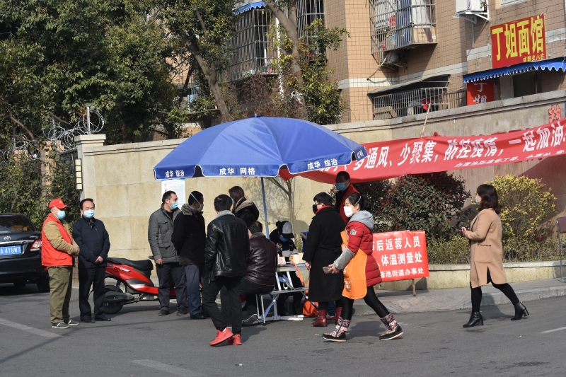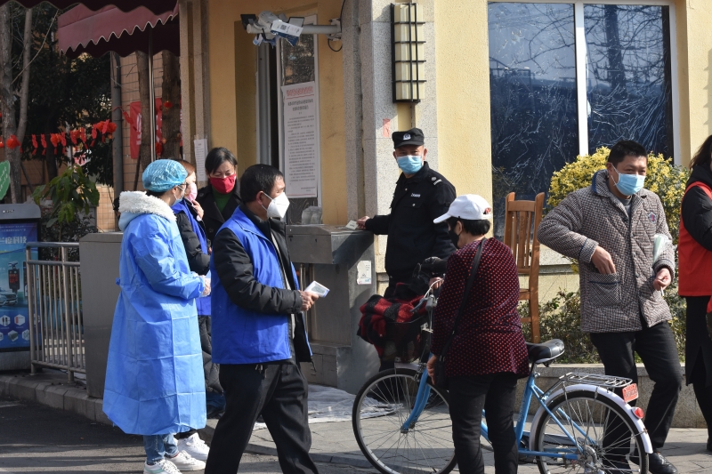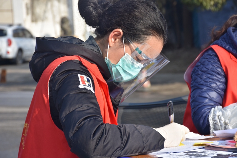 2月21日,省总成都工人疗养院23名志愿者服务队到白莲池街道与辖区7个社区工作人员一同开展辖区居民信息修对排查、核实出入五色卡、测量体温、社区宣传等工作,做到“逢人必问、安全防控时时讲”, 遇到个别没有佩戴口罩的行人,立马进行提醒,引导抓紧戴好口罩,做好自我防护。