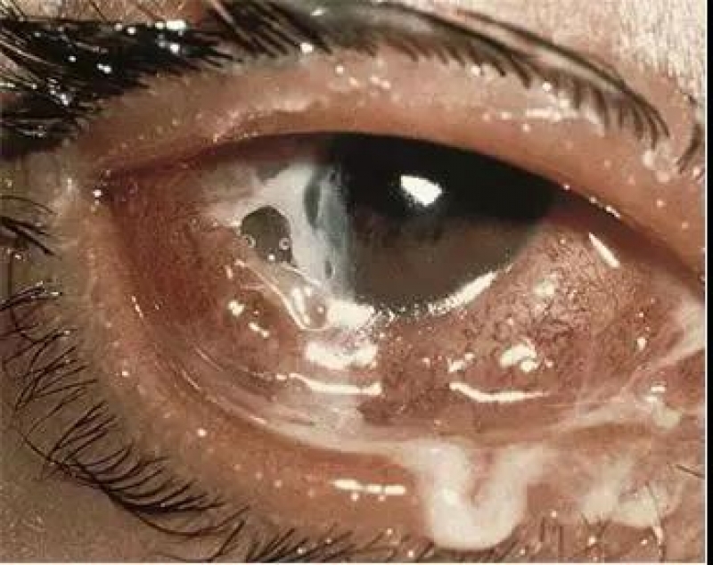 病毒性结膜炎最常见,传染性强,常在学校和其他人口密集的地方传播。常引起灼热感,眼红,并伴有水样分泌物。