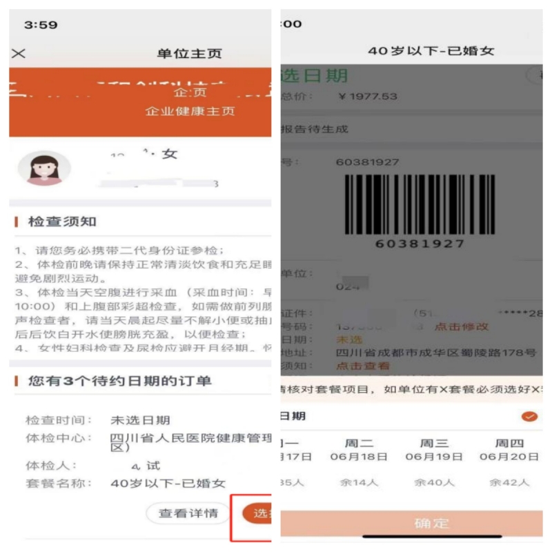 选择您的体检时间,请根据自己情况选择,并按时到检。