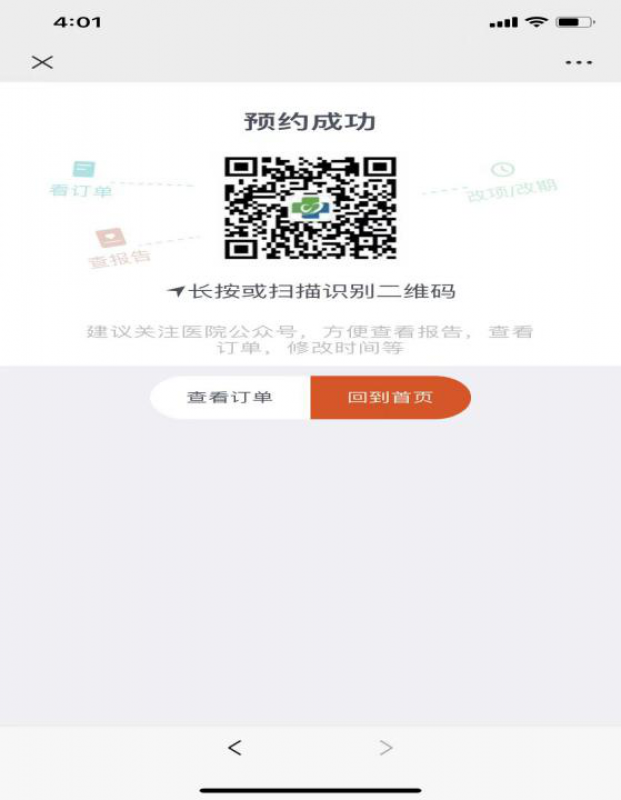 通过手机微信关注“四川省人民医院健康管理中心”或扫描下方二维码进行线上预约(进入公众号-体检指南-单位预约-填写手机号码,身份证号码登录-选择体检地点和时间)。