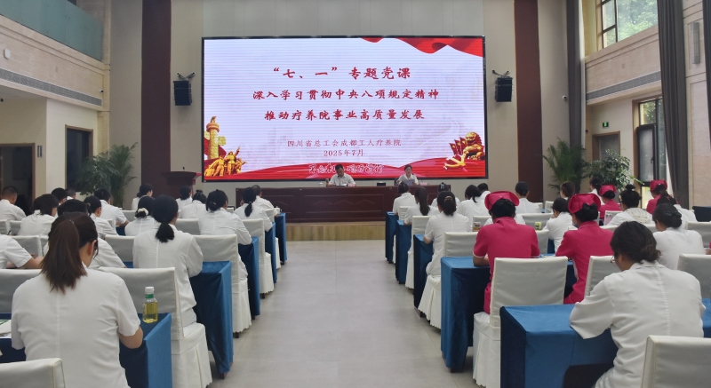 7月8日,四川省总工会成都工人疗养院党总支书记雍臃以“深入学习贯彻中央八项规定精神,推动疗养院事业高质量发展”为主题,为全体党员干部讲授“七一”专题党课。