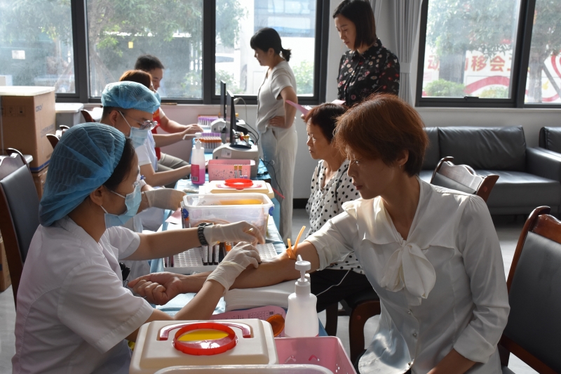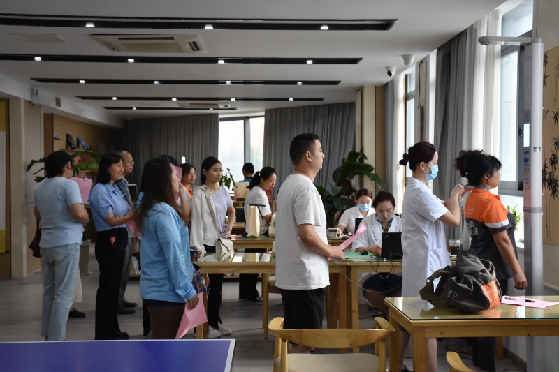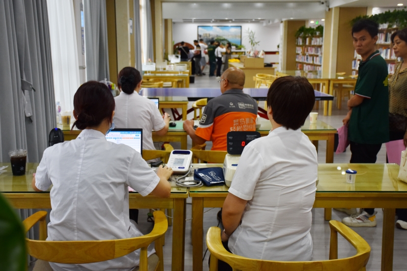 在嘉陵区工人文化宫体检现场,医护人员耐心询问参检人员身体状况、提供个性化的健康指导。